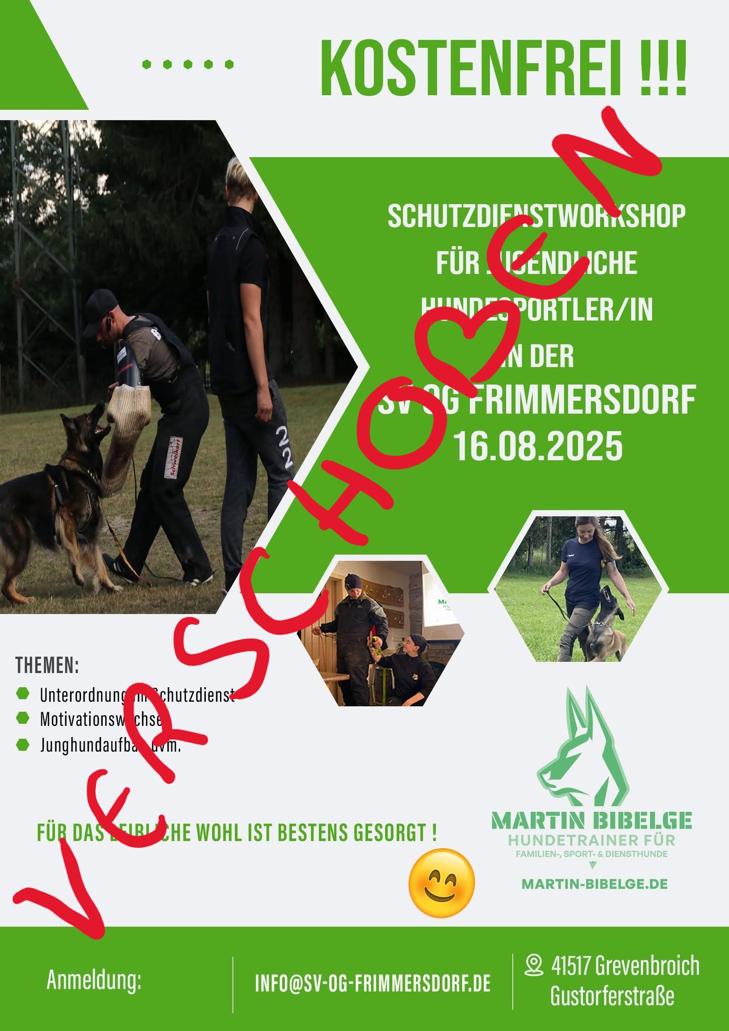 Schutzdienstworkshop für jugendliche Hundesportler in der OG Frimmersdorf